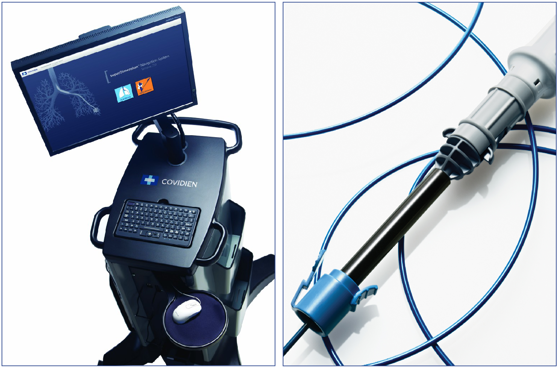 The superDimension™ navigation system allows for a minimally-invasive procedure that enables physicians to look deeper and farther into very narrow and peripheral lung areas than previously possible. Similar to GPS (Global Positioning System) technology, electromagnetic navigation bronchoscopy (ENB) creates a three-dimensional virtual “roadmap” of the lungs from the patient’s CT-scan. This enables the physician to navigate a unique set of catheters to the outer most areas of the lungs, reaching previously unreachable lung nodules for diagnosis and treatment. A lung nodule is an area of abnormal tissue that can either be benign or malignant.