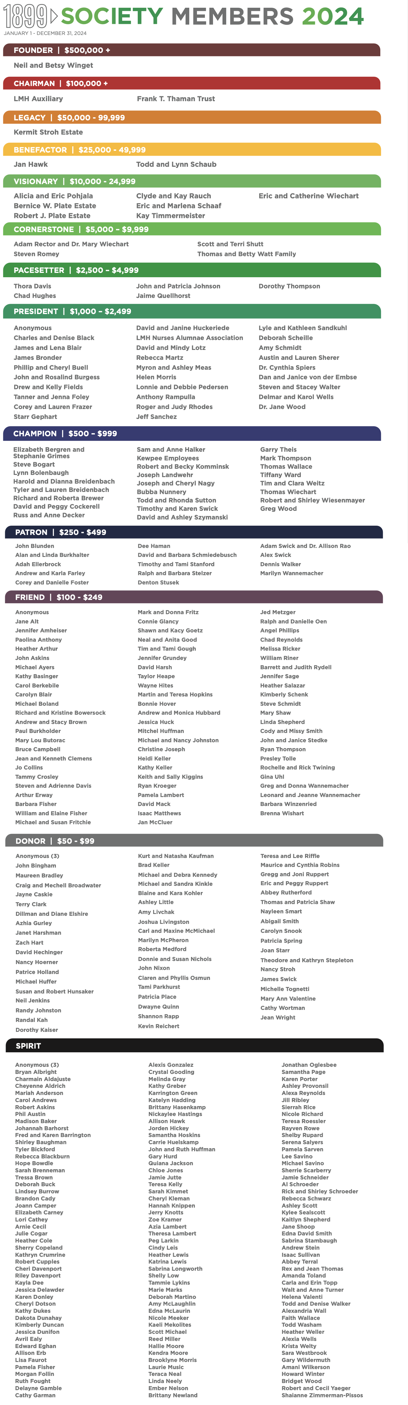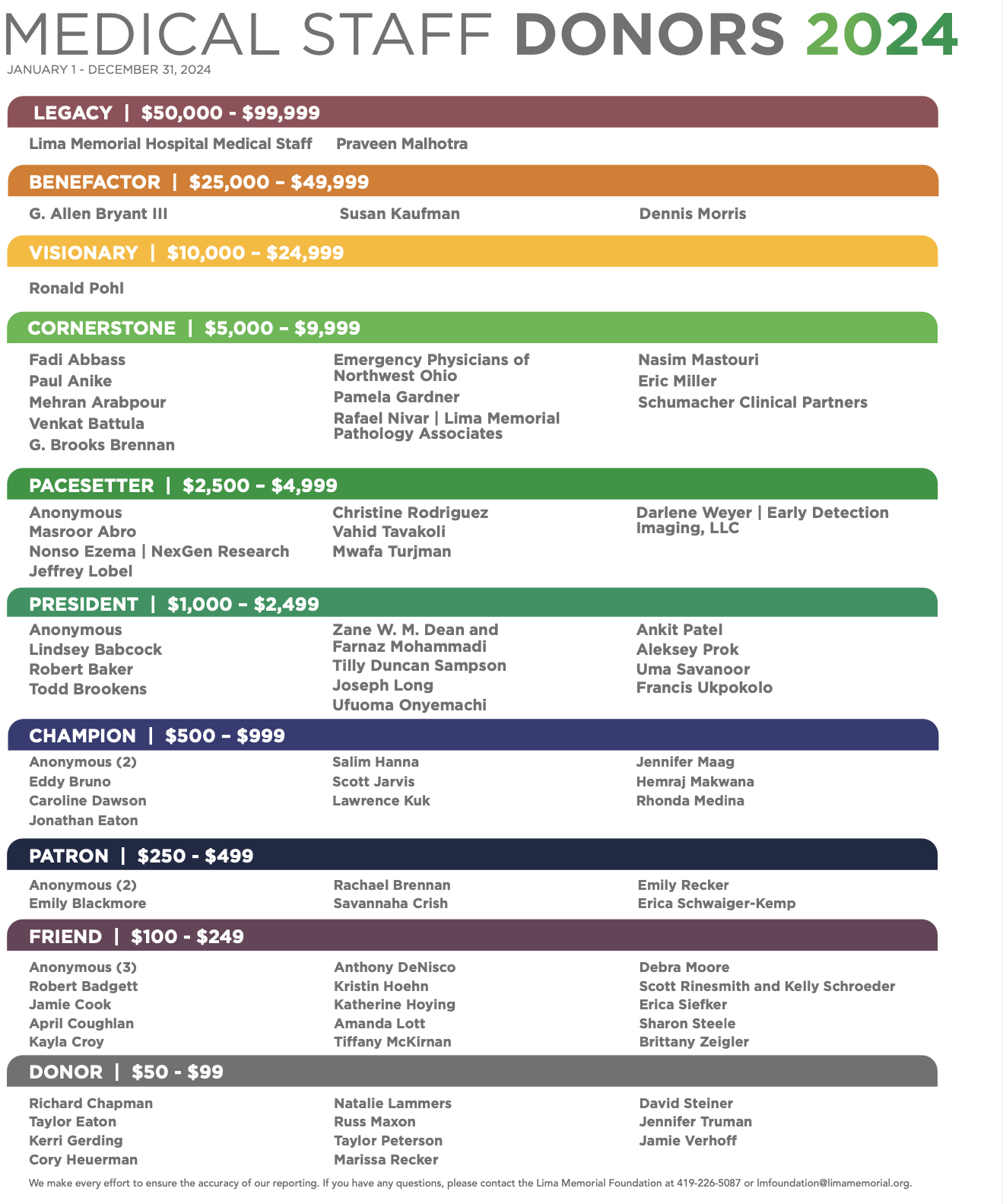 To learn how you can join the many individuals and businesses who support the Lima Memorial Foundation every year, please send an email to lmfoundation@limamemorial.org or call 419-226-5087.