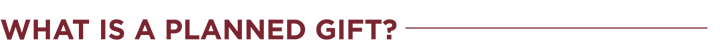 A planned gift is any gift made, in lifetime or at death, as part of your overall financial and/or estate plan. Planned, or deferred, gifts permit donors to plan their gifts while receiving income and tax benefits for themselves and for their beneficiaries upon passing.