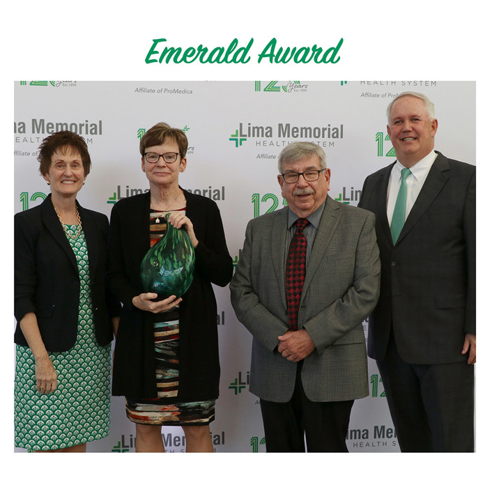 The Emerald Award is reserved exclusively for individuals and businesses who demonstrate a significant commitment to improving the health of our community by contributing cumulative gifts of $1 million or more to the Lima Memorial Foundation.