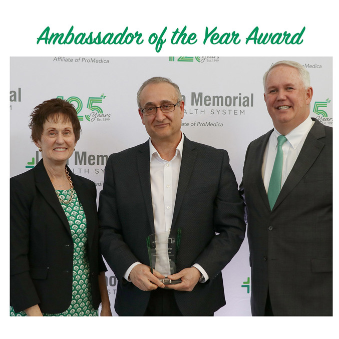 The Ambassador of the Year Award honors an individual who exemplifies volunteerism by selflessly and enthusiastically devoting his or her time, energy and resources to further the mission of the Lima Memorial Foundation.